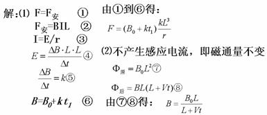 当棒的速度为v时,感应电动势的大小为:E=Blv………………③ (3分)