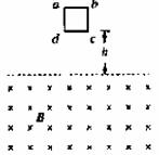 3. 均匀导线制成的单位正方形闭合线框abcd,每边长为L,总电阻为R,总质量为m。将其置于磁感强度为B的水平匀强磁场上方h处,如图所示。线框由静止自由下落,线框平面保持在竖直平面内,且cd边始终与水平的磁场边界平行。当cd边刚进入磁场时,