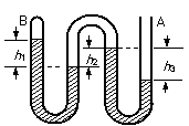 如图所示,竖直放置的弯曲管A端开口,B端封闭,密度为r 的液体将两段空气封闭在管内。若大气压强为p0,管内液面高度差分别为h1、h2和h3,则B端气体的压强为( )