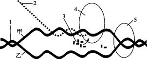43.下图为转录的过程图解。图中1是DNA分子,3是四种游离的核糖核苷酸,4、5是两种功能不同的酶。请据图分析回答:([ ]内填序号)
