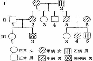 44.右图是患甲病(显性基因为A,隐性基因为a)和乙病(显性基因为B,隐性基因为b)两种遗传病的系谱图。据图回答: