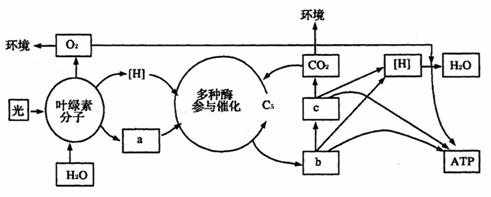 45.下图表示在光照条件下,植物叶肉细胞中发生的生理过程,请分析回答: