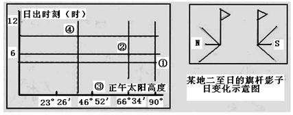 读6月22日四地日出时刻与正午太阳高度示意图,回答3-4题。