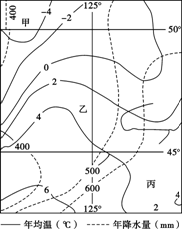 A.气温:甲>乙>丙;降水:甲<乙<丙