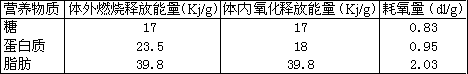 11.三类营养物质氧化时释放能量与耗氧量如下表: