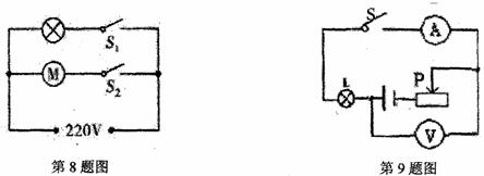 8.小亮家的卫生间按如图所示的电路安装了照明灯和换气扇,则关于这两种用电器的说法,正确的是