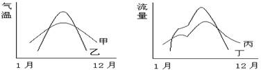 29.图中反映人类活动围湖造田对湿地破坏后的气温曲线、流量曲线分别是