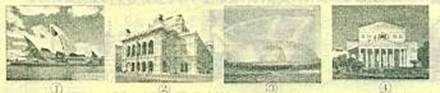 2.下列图片是中国国家大剧院、悉尼歌剧院、维也纳国立歌剧院和莫斯科大剧院。其选项排列正确的是