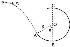 16.(9分)如图,一个质量为0.6kg的小球以某一初速度从P点水平抛出,恰好从光滑圆弧ABC的A点的切线方向进入圆弧(不计空气阻力,进入圆弧时无机械能损失)。已知圆弧的半径R=0.3m,θ=60°,小球达到A点时的速度v=4m/s。(取g=10m/s2)求: