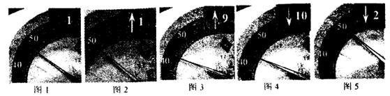 7.为了探究升降式电梯起动和制动时加速度的大小,几位同学做了如下操作:他们将体重计放在电梯中,一位同学站在体重计上,其他同学用照相机做相关记录。他们乘坐电梯从第1层直接运行到第10层,之后又从第10层直接运行回到第1层,照相机记录的体重计读数盘指针位置如图所示。图中右上角的数字表示楼层数,箭头指向表示电梯运行方向,没有箭头指向的,表示电梯静止。根据记录结果,他们进行了以下推断分析,其中正确的是 ( )