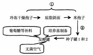 (3)培养基的配制要满足青霉菌__▲__等营养物质的需求。若在该培养基中添加蛋白胨,从化学成分上看该培养基可称为__▲__培养基。种子罐2又叫繁殖罐,可推测②属于发酵工程中的__▲__阶段。发酵罐接种__▲__(填前或后),必须进行灭菌处理。