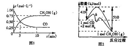 (1)图1是反应时CO和CH3OH(g)的浓度随时间变化情况。从反应开始到平衡,用CO浓度变化表示平均反应速率v(CO)= 。
