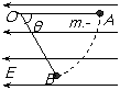 4.河南省豫南九校2010届高三上学期第三次联考如图所示,在场强大小为E的匀强电场中,一根不可伸长的绝缘细线一端拴一个质量为m电荷量为q的带负电小球,另一端固定在O点。把小球拉到使细线水平的位置A,然后将小球由静止释放,小球沿弧线运动到细线与水平成θ=60°的位置B时速度为零。以下说法正确的是 ( BC )