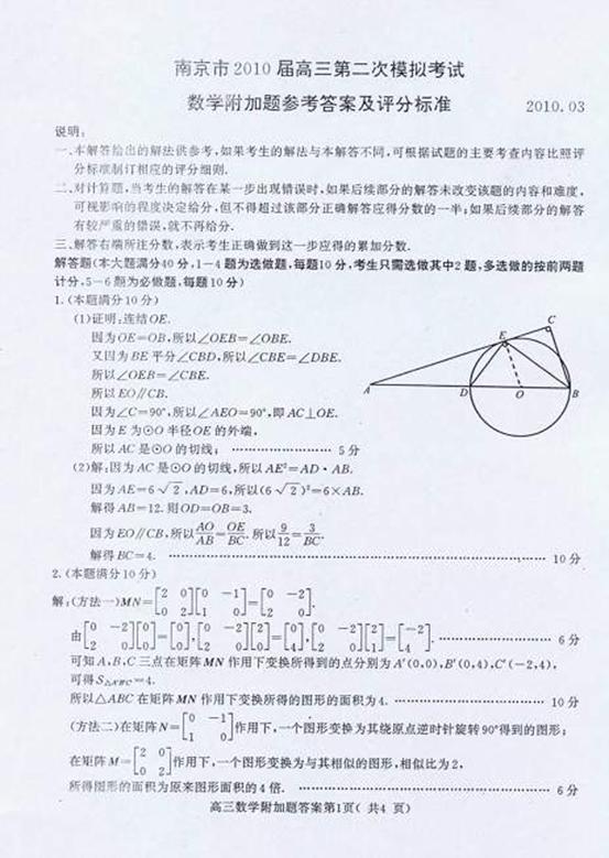 2.(矩阵与变换选做题)