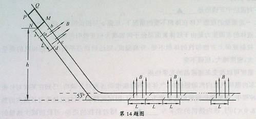 14.(16分)如图所示,两条光滑的绝缘导轨,导轨的水平部分与倾斜部分平滑连接.两导轨间距为L=0.5m.导轨的倾斜部分与水平面成