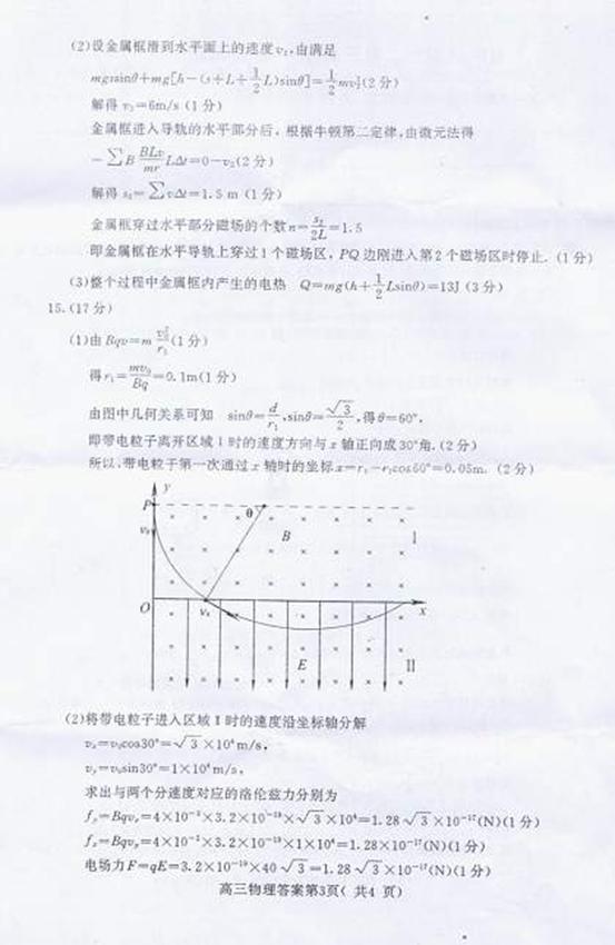 m/s从y轴上的P点(纵坐标为