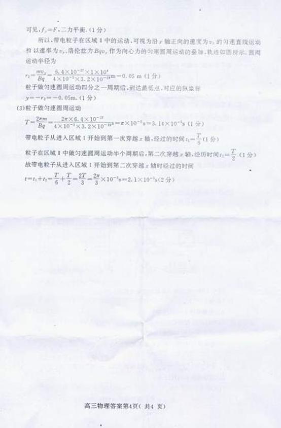 (1)求带电粒子第一次穿越X轴时的横坐标x;