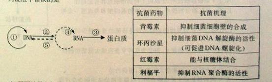 22.左下图为遗传信息传递和表达的途径,由下表为几种微生物的作用原理,结合图标分析,下列说法错误的是