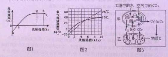 (2)根据图2分析,如果在阴雨天气,温室25℃,光照强度小于5K|x时,采取______ 的措施,有助于提供作物产量,其原因是在光照强度小于5K|x时,______。