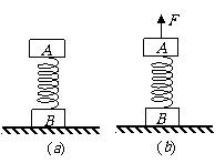 质量相等的两木块A、B用一轻弹簧栓接,静置于水平地面上,如图(a)所示。现用一竖直向上的力F拉动木块A,使木块A向上做匀加速直线运动,如图(b)所示。从木块A开始做匀加速直线运动到木块B将要离开地面时的这一过程,下列说法正确的是(设此过程弹簧始终处于弹性限度内 )