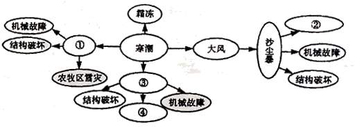 5.下图表示“寒潮-大风-雪灾”的灾害链。图中①②③④所对应的内容正确的是( )
