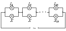 某实物投影机有10个相同的强光灯L1-L10(24V/200W)和10个相同的指示灯X1-X10(220V/2W),将其连接在220V交流电源上,电路如图所示,若工作一段时间后,L2灯丝烧断,则