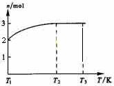 ⑷一定温度下,将1mol N2O4置于密闭容器中,保持压强不变,升高温度至T1的过程中,气体由无色逐渐变为红棕色。温度由T1继续升高到T2的过程中,气体逐渐变为无色。若保持T2,增大压强,气体逐渐变为红棕色。气体的物质的量n随温度T变化的关系如图所示。