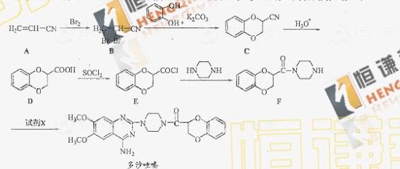 19.(14分)多沙唑嗪盐酸是一种用于治疗高血压的药物。多沙唑嗪的合成路线如下: