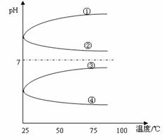 (3)将等体积、等物质的量浓度B和C混合后溶液,升高温度(溶质不会分解)溶液pH随温度变化如下图中的_____________曲线(填写序号) 。