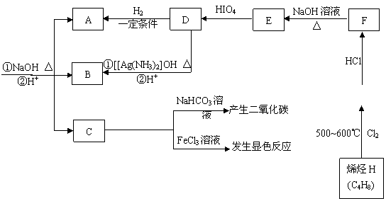 (16分).有机物X、A、B、C、D、E、F、G、H可以发生如下转化。其中C苯环上的一氯代物只有两种,烯烃H与HCl加成生成的产物有两种,D分子中所有的原子不可能均处在同一平面内。