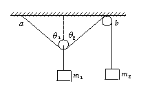 4.如图1-6-1所示装置,两物体质量分别为m1、m2,悬点ab间的距离大于滑轮的直径,不计一切摩擦,若装置处于静止状态,则
