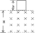 边长为h的正方形金属导线框,从如图所示的位置由静止开始下落,通过一匀强磁场区域,磁场方向水平,且垂直于线框平面,磁场区域宽度为H,上、下边界如图中虚线所示,H>h,从线框开始下落到完全穿过磁场区域的全过程中