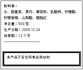 65.(2分)观察下图某品牌的果冻食品标签,分析该标签存在的主要的问题是什么?并写出原因。