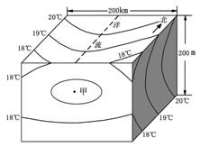 图3是信风带中的某海区水温空间分布(水平分布和垂直分布)情况。读图完成5~6题。