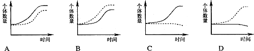 4.在光照下,将等细胞数量的衣藻和大肠杆菌分别接种到只含无机盐的培养液中培养,结果是(虚线和实线分别表示大肠杆菌和衣藻的生长曲线)( )
