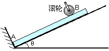 (17分)如图所示,电动机带动滚轮作逆时针匀速转动,在滚轮的摩擦力作用下,将一金属板从斜面底端A送往上部,已知斜面光滑且足够长,倾角