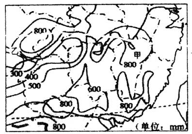 下图为我国部分地区多年平均地面蒸发量分布图,完成5-6题。