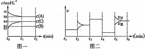 32.(14分)向一密闭容器中加入2molA、0.6molC和一定量的B三种气体。一定条件下发生反应,图一所示为恒容条件下各物质浓度随时间变化,图二为t2时刻后改变条件,平衡体系中反应速率随时间变化的情况,且四个阶段都各改变一种不同的条件(不同时充入反应物和生成物)。已知只有t3-t4阶段为使用催化剂;图一中t0-t1阶段c(B)未画出。