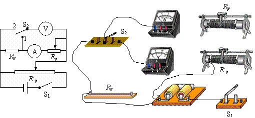 (II)、应用《伏安法测电阻》时,由于电压表、电流表内阻的影响,使得测量结果存在着误差,而按图中所示的电路进行测量,则可以避免由电压表和电流表内阻所带来的误差。电流表和电压表的量程分别用0~ 0.6A和0~ 3V档。