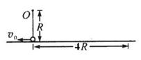 35.如图所示,长为R的轻绳,上端固定在O点,下端连接一只小球。小球接近地面,处于静止状态。现给小球一沿水平方向的初速度,小球开始在竖直平面内做圆周运动。设小球到达最高点时绳突然断开,已知小球最后落在离小球最初位置4R的地面上,重力加速度为g。试求:(图中所标 v0的数值未知)