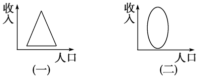 34. (8分)下图为现代社会中存在的两种不同的收入分配结构示意图。两幅图所代表的社会财富总量相等,图(一)被称为“金字塔型”收入分配结构,图(二)被称为“橄榄型”收入分配结构。
