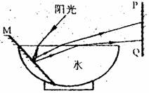 的碗放在有阳光的地方,将平面镜M斜放入水中,