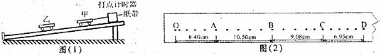 (2)(5分)某同学设计了一个用电磁打点计时器验证动量守恒定律的实验.如图(1)所示。在长木板右端下方垫一小木块以平衡摩擦力,使甲、乙两小车均能在木板上做匀速运动。小车甲的前端粘有橡皮泥,轻轻推小车甲,使之做匀速运动后与原来静止在前方的小车乙相碰,碰后甲、乙两车粘合成一体继续做匀速运动,电磁打点计时器在连接着小车甲后端的纸带上打出的点迹如图(2)所示。现测得相邻两个计数点间的距离(已标在图上).且已知小车甲、乙两车的质量分别为m甲=0.4kg、m乙=0.2kg,交流电源的频率为50HZ。则从纸带中可以判定:甲、乙两车发生碰撞是在 两计数点之间;碰前两车的总动量为 kg·m/s,碰后两车的总动量为 kg·m/s。实验表明,在误差允许的范围内,甲乙两车构成的系统碰撞过程中动量守恒。(保留三位有效数字)