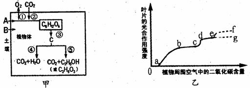 (1)甲图中A、B代表植物从土壤中吸收的两大类物质:A代表 ,B代表 。