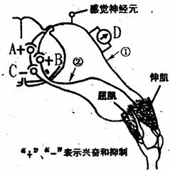 生时,伸肌收缩而屈肌舒张。标号①、②是神