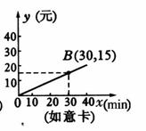 之间的函数关系式;(2)、请帮用户计算,在一个月内使用哪一种卡便宜?