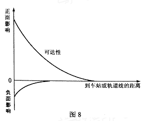 图8是“地面轨道交通对房地产的正 负影响示意图”,读图回答21-22题。