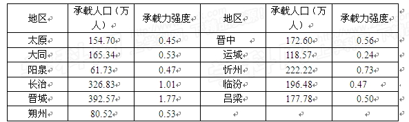 山西的水资源承载状况较为严峻,水资源已经成为制约山西省社会经济与生态环境协调发展的主要因素。承载力强度指标是指水资源承载人口与实际人口之比。读表一回答23-24题。