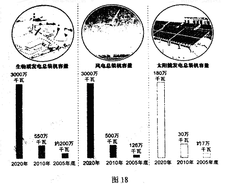 D.[环境保护]利用风力、太阳能、生物能等可再生能源发电是当今新能源发电的主流。作为化石能源发电和水电的重要补充,新能源发电日益受到世界各国的关注。读图18,回答下列问题。(10分)