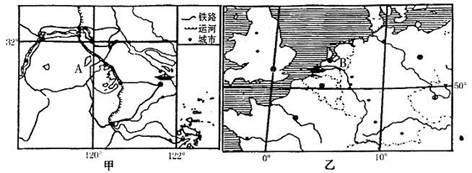 (1)甲、乙两图所示的地区中,面积较大的是 。